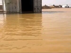 Según fuentes locales, las precipitaciones —que se registraron de forma irregular pero con episodios particularmente intensos— provocaron derrumbes en algunas zonas e inundaciones en estructuras esenciales, incluido el hospital regional. Imágenes dispersas muestran un contexto crítico, con grandes extensiones de terreno convertidas en barro y una visibilidad gravemente reducida debido a la tormenta.